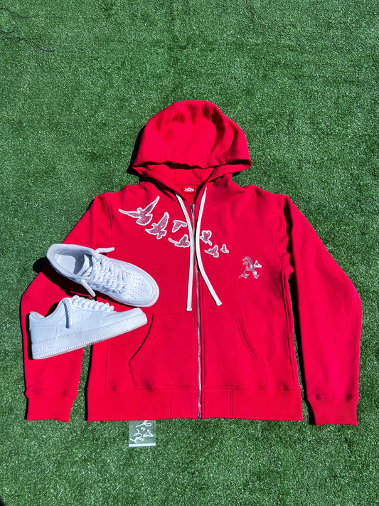 All Glory To God "Iced Out Flocka Doves" FlyFleece ZipUp Hoodie 'Red'